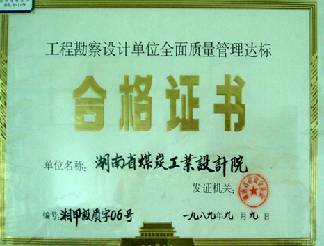 全面質量管理合格證書(1989)